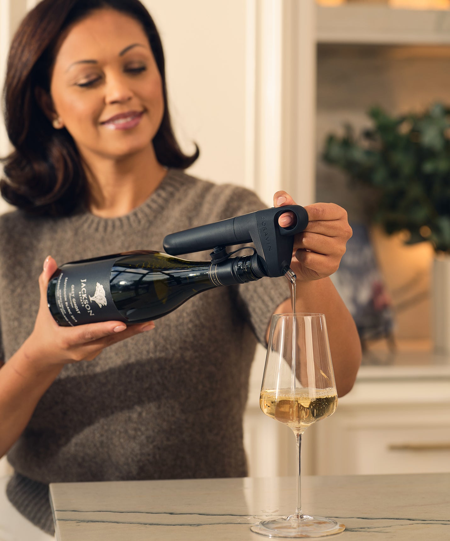When pouring with the Pivot™ Aerator, use short, light presses on the button to maintain a gentle shower. This will expose wine droplets to the air and rapidly aerate as you pour.