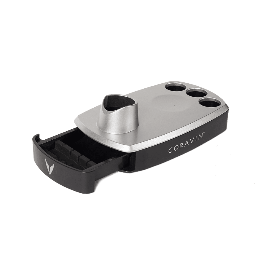 Le Coravin Pedestal est une façon élégante d'exposer votre Coravin système de vin tout en gardant Coravin capsules et Coravin et les aiguilles à portée de main. Le piédestal est fabriqué en zinc avec une finition argentée mate et comporte un tiroir durable pour ranger en toute sécurité trois aiguilles et un outil de dégagement des aiguilles.Trois Coravin Trois capsules peuvent être facilement rangées dans les espaces situés en haut du piédestal. Coravin Le piédestal s'adapte à tous les Coravin systèmes de vin. Coravin Les capsules Premium et les aiguilles ne sont pas incluses.